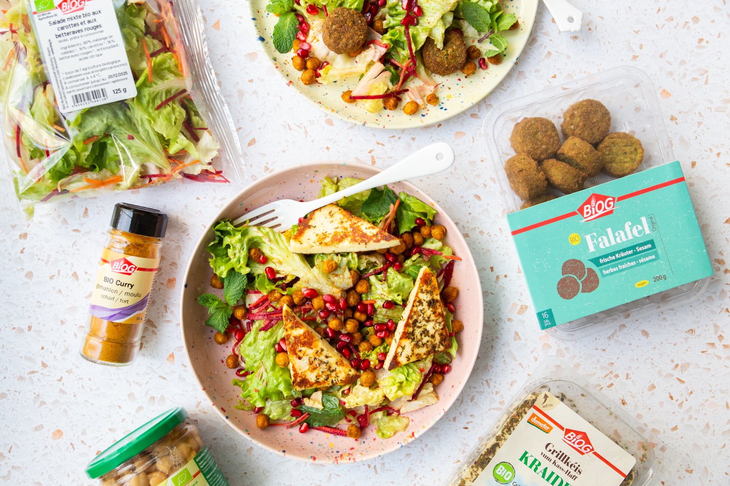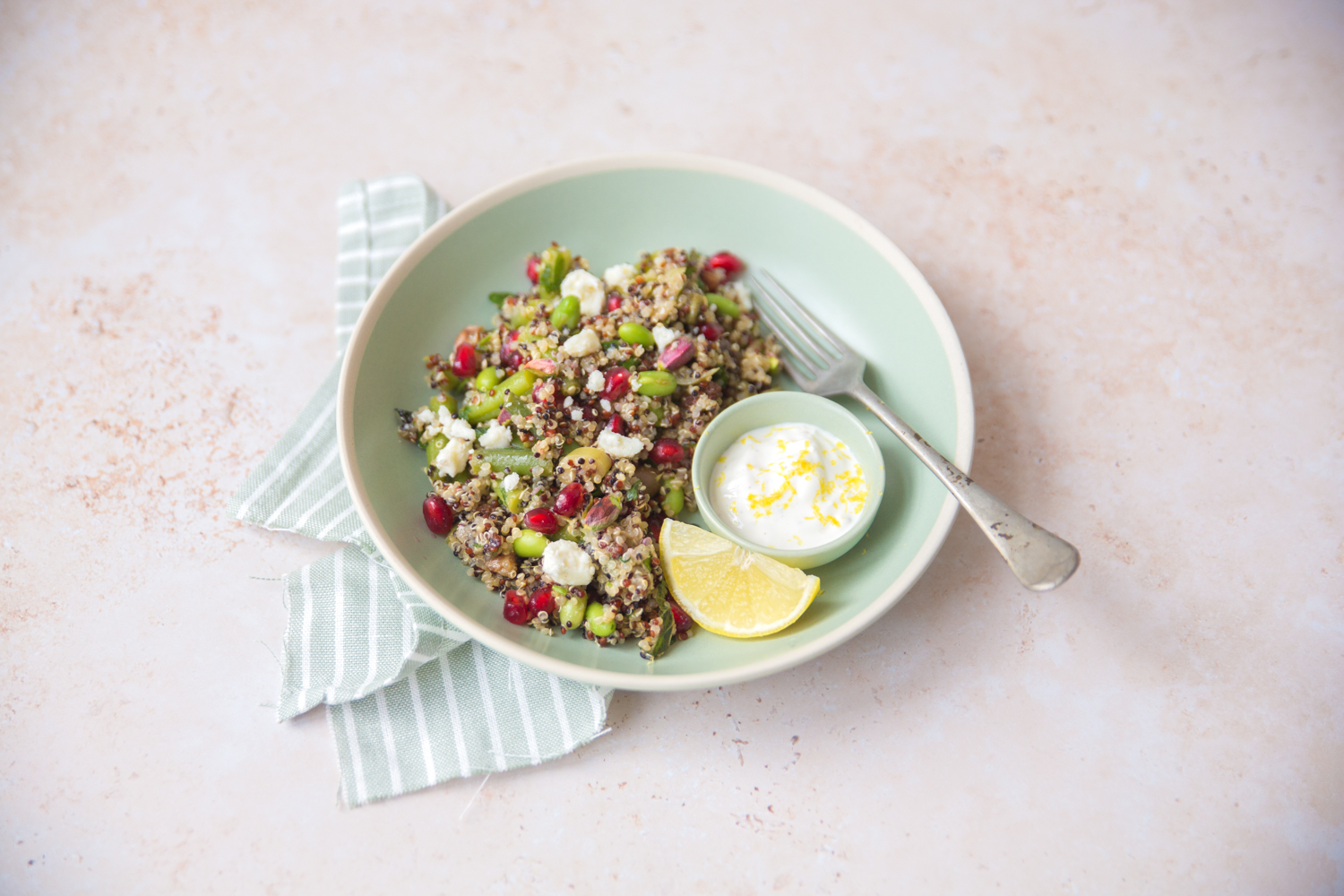 Crispy curry chickpeas, crunchy salad, pomegranate, mint and a sharp lemon–mustard dressing…