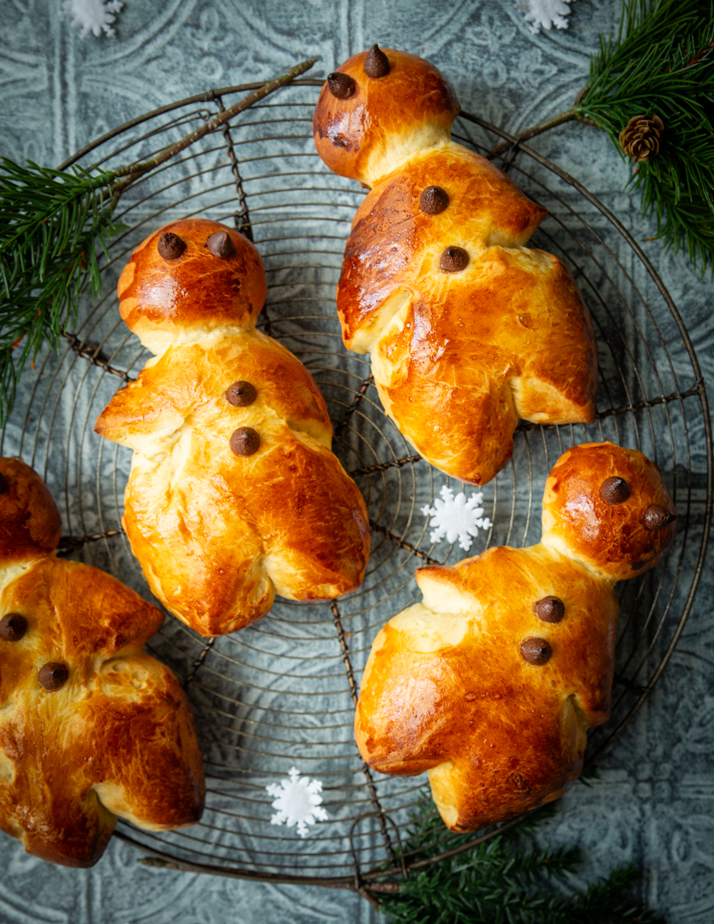 In December all the bakeries in Luxembourg sell these cute little men- and more recently women- shaped brioches, called a Boxemännchen! It’s the perfect breakfast treat around Christmas time, and it’s really not hard to make!