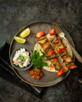 Grill the skewers on the barbecue for 5 minutes, turning them a few times, until nicely charred.