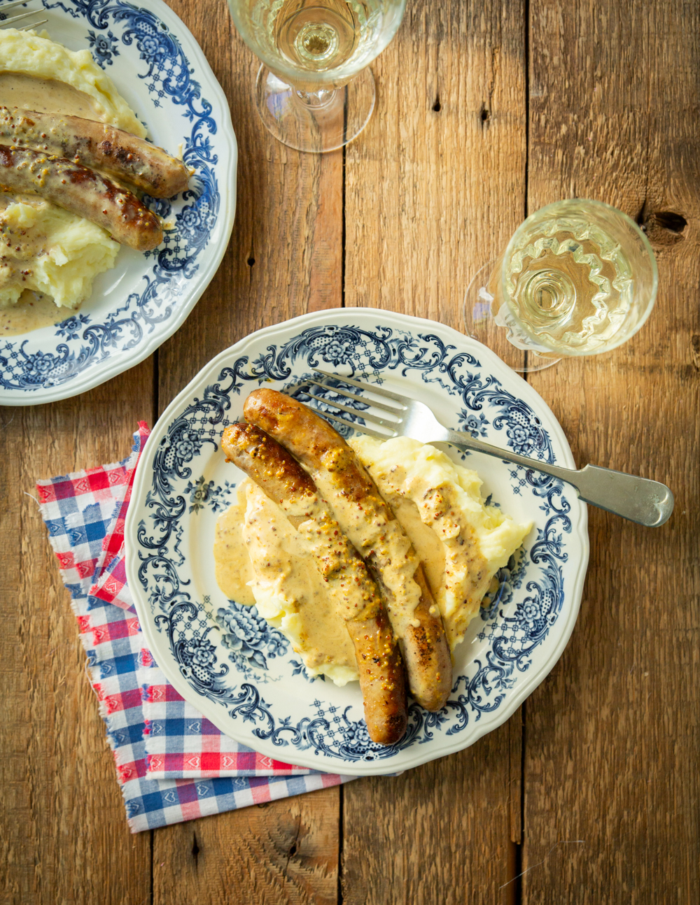 Wäinzoossiss is a traditional Luxembourgish pork and beef sausage that’s served pan-fried with a creamy mustard sauce. The name is a bit misleading, as it means ‘wine-sausage’, but there’s usually no wine inside – just in the sauce that goes with it.