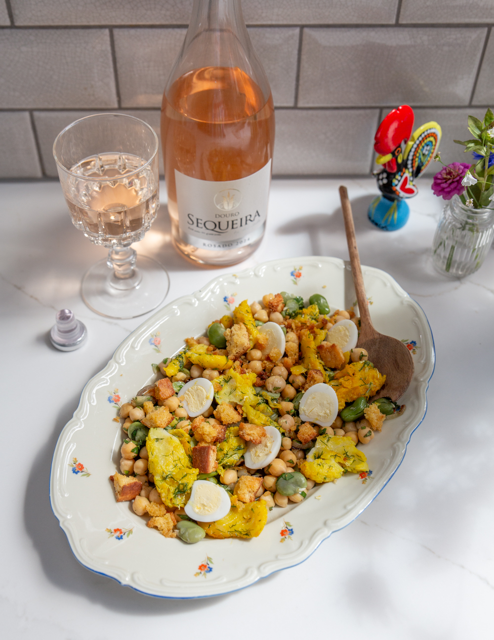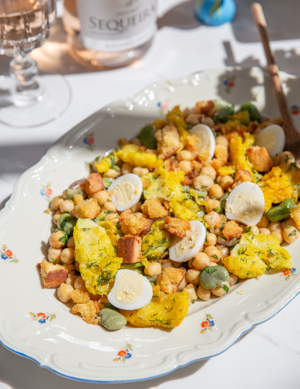 My sunny twist on the classic Portuguese meia desfeita — saffron-marinated bacalhau, chickpeas, eggs, and slow-cooked onions, lifted with lots of fresh herbs, lemon, and a crunchy cornbread topping. Inspired by the flavours of Portugal and made with beautiful ingredients from Bexeb in Käerjeng.