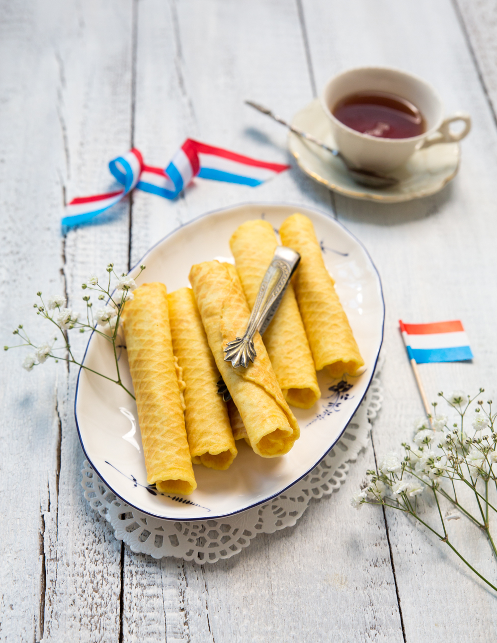 I think many Luxembourgers have fond memories of making Wäffelcher at their grandparents’. These thin, buttery wafers are baked individually in a round waffle maker and wrapped around the handle of a wooden spoon while still hot, so that they get a cone shape.