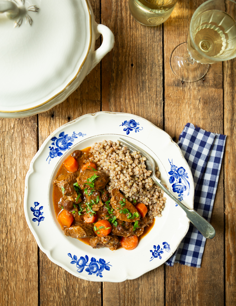 This tender beef stew is a perfect comfort dish made with regional ingredients. Slow-cooked BioGreenBeef melts in the mouth, paired with a gently spiced sauce enriched with Fru Terraphon Luxembourgish white wine, sweet apple-quince juice, and plump raisins. It’s served with nutty Ourdaller buckwheat ‘couscous’ for a wholesome twist.